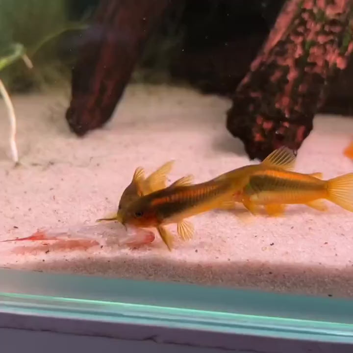 金線鼠魚是鼠魚家族中極受歡迎的品種,牠們擁有鼠魚典型的可愛模樣:圓潤短小的身體、朝下生長的嘴部用於覓食、兩對靈敏的觸鬚,以及鑲嵌黑邊的背鰭。性情溫和、活潑好動,喜愛群聚生活,常可見牠們成群結隊地在魚缸底部忙碌地翻砂、搜尋食物殘渣,是淡水觀賞魚裏的一個重要品種。