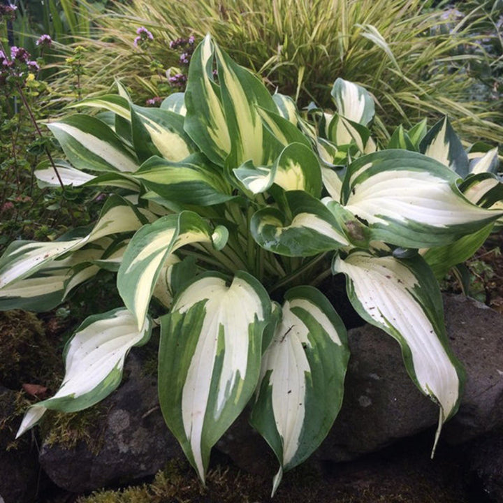 花葉玉簪花葉片白色深綠邊緣少許黃色條紋,花朵潔白,花香淡雅,是優良的觀葉觀花植物。無論是盆栽還是露地栽培,都能展現出其獨特的觀賞價值。