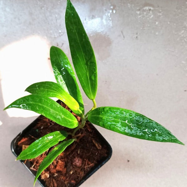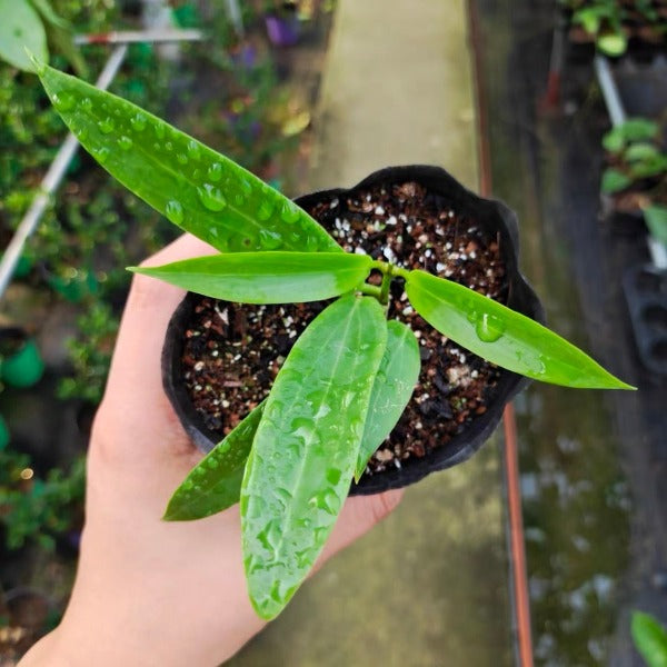 黃布拉軒球蘭獨特的細長葉子,具有迷人的脈絡,最初柔韌,但隨著成熟而變硬。