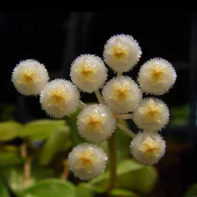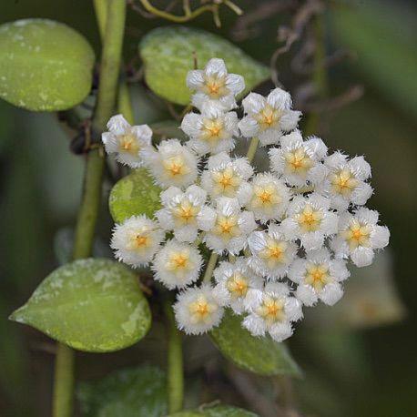 Hoya Lacunosa iis a vining epiphytic plant in the family Apocynaceae.It is native to the Indonesian islands. The inflorescence is made up of multiple flowers in a group of umbel. The inflorences are yellow-white, star-shpaed with purple centers. They like made up of wax.The flower's surface fuzzy beacuse it is covered by tiny hair. They are heavily scented with a sweet fragrance.