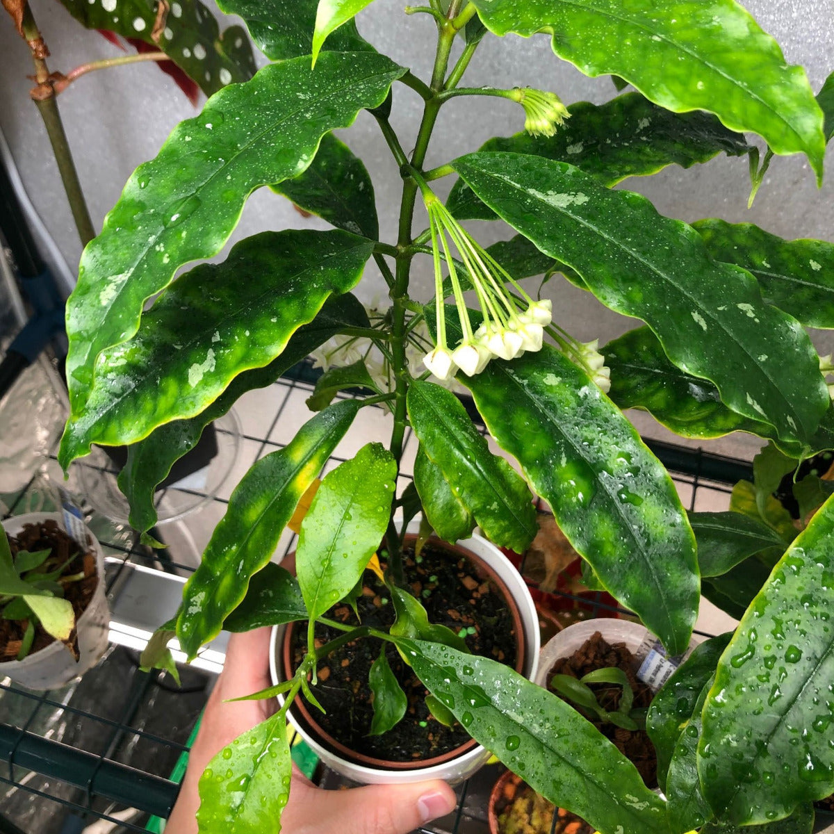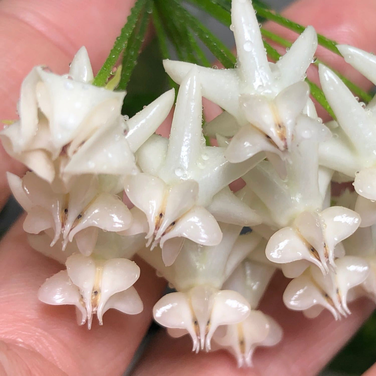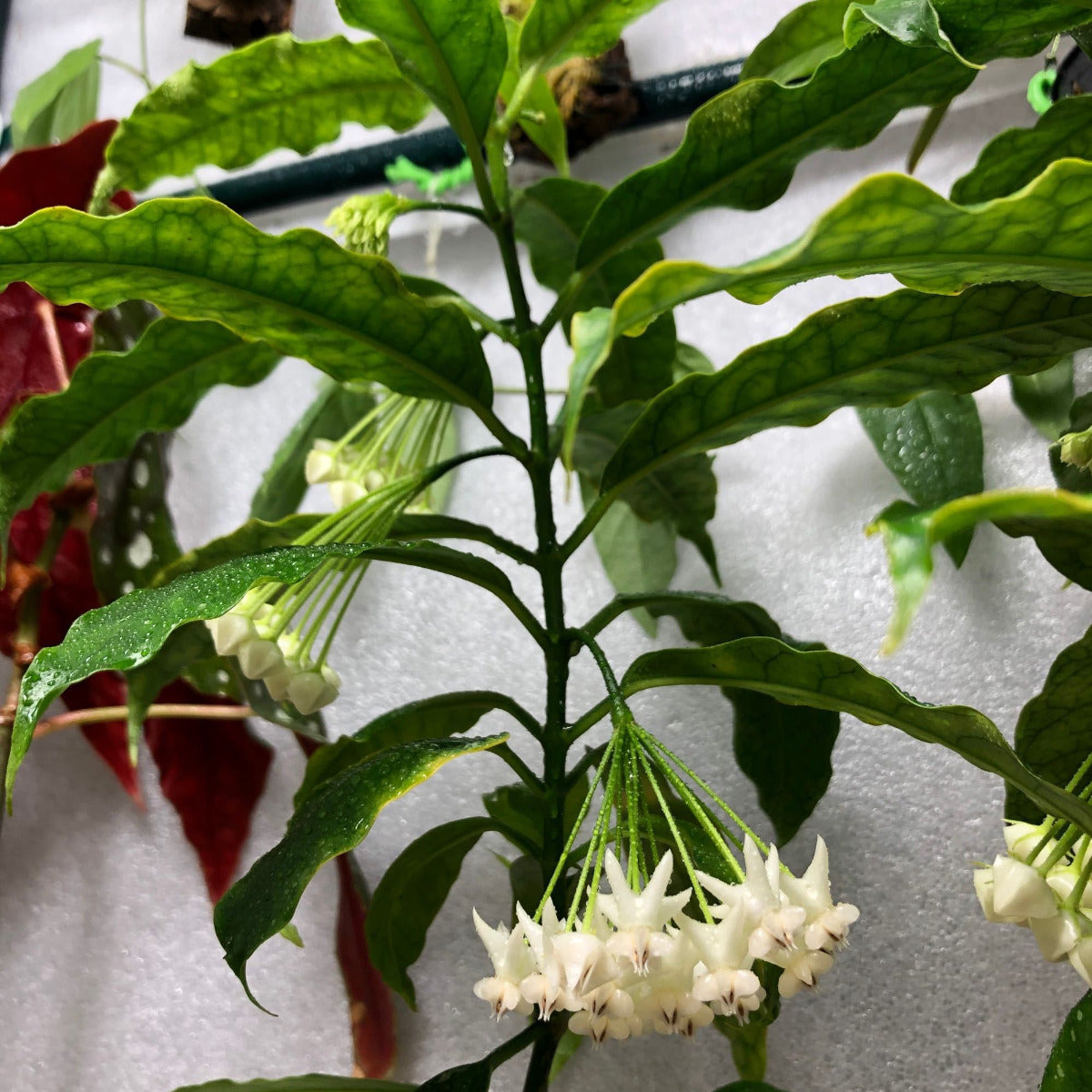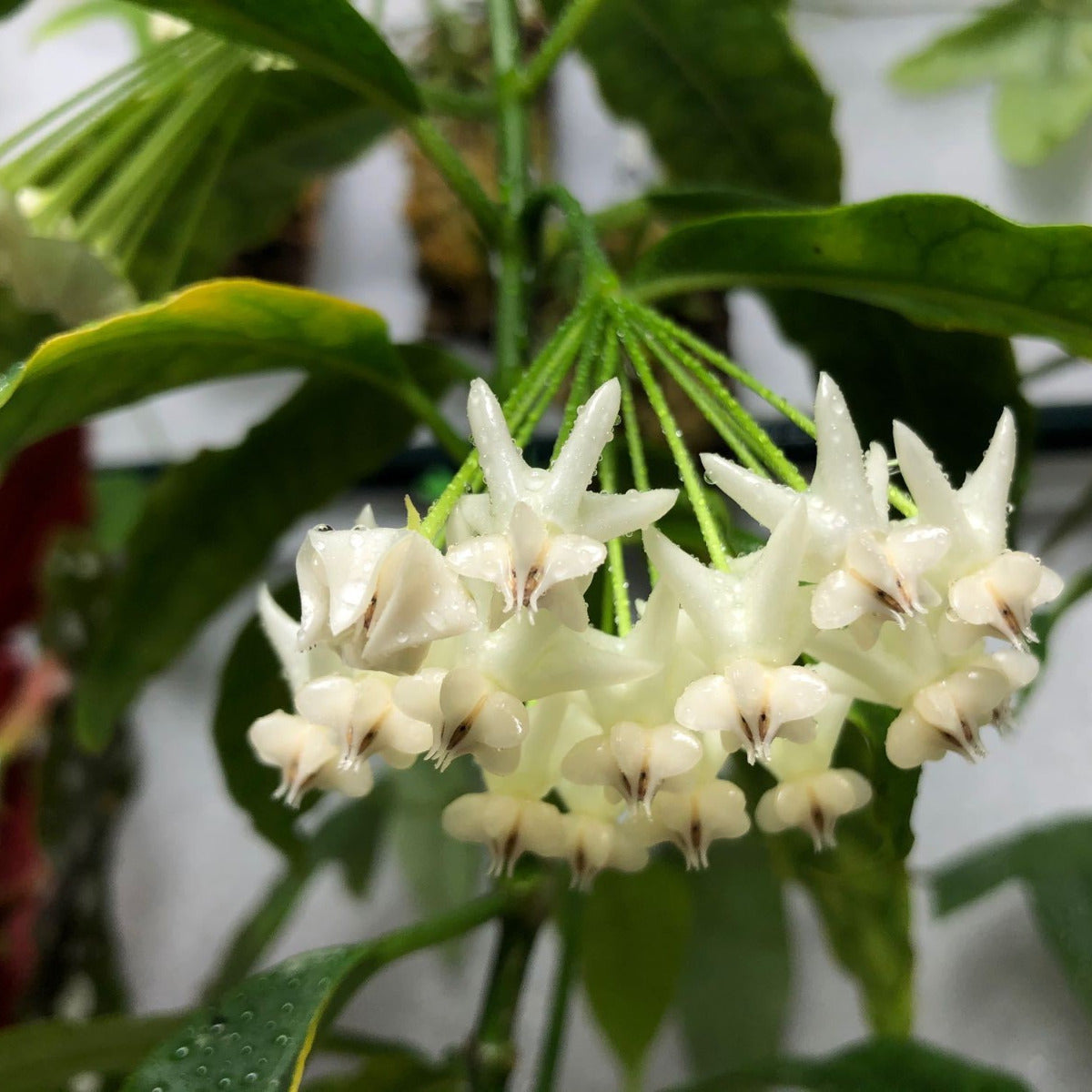 Hoya lockii is a vining epiphytic plant in the family Apocynaceae.It is native to the Borneo.The inflorescence is made up of multiple flowers in a group of umbel. The inflorences are white ,star-shaped with white centers. The flower's surface fuzzy beacuse it is covered by tiny hair. They are heavily scented with a sweet fragrance.