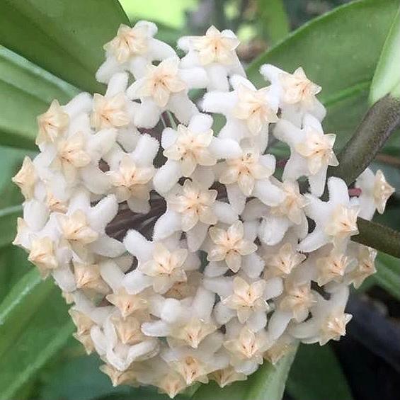 Hoya revolubilis is a vining epiphytic plant in the family Apocynaceae. It is orignated from Germany .The inflorescence is made up of multiple flowers in a group of umbel. The inflorences are white, star-shpaed with purple centers. They like made up of wax.The flower's surface fuzzy beacuse it is covered by tiny hair. They are heavily scented with a sweet fragrance.