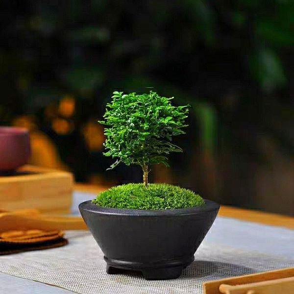 這種迷你盆景擁有小巧的中綠色葉片和甜美的香氣,非常適合擺放在辦公桌上。春夏季節,九裡香會開出一簇簇芬芳的白色花朵,花朵有4到5個萼片,散髮出活力四射卻又不失細膩的氣息。它的一些葉子可以被用作食物的香料。九裡香盆景本身屬於熱帶植物,喜陽光充足,喜歡早晨的陽光和下午的陰涼,而且維護成本低。