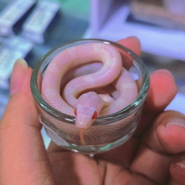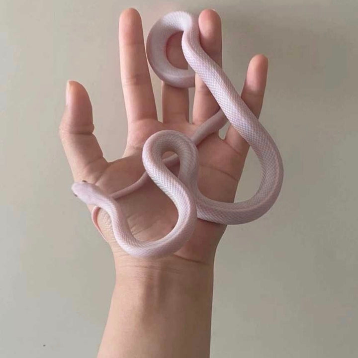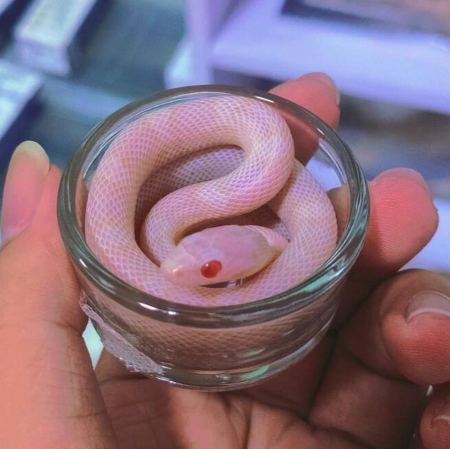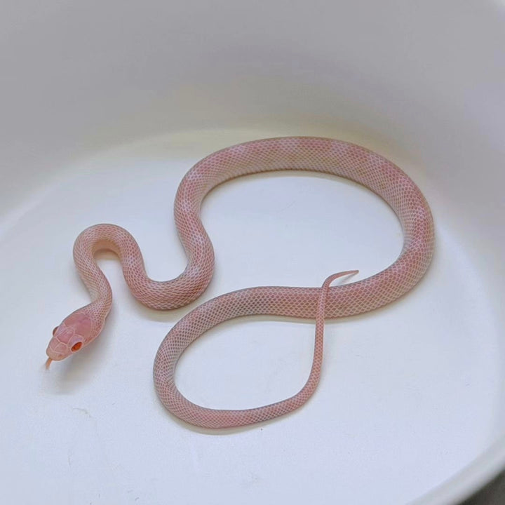 暴風雪玉米蛇作為遊蛇科無毒蛇,通體雪白,鱗片細膩光滑,無雜色斑紋,眼睛呈黑色或暗紅色(因白化基因所致),頭部扁平圓潤,瞳孔渾圓,被譽為蛇中「白娘子」,位列「十大最美蛇類」之一