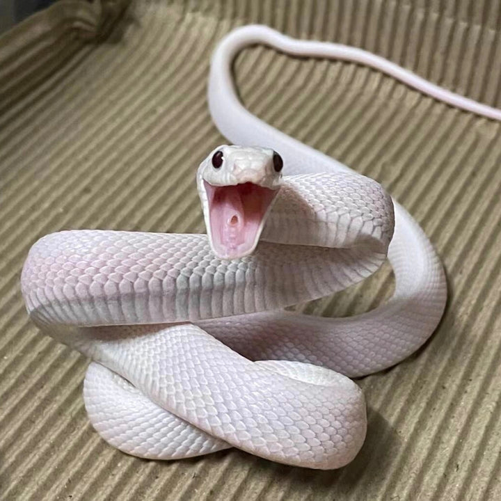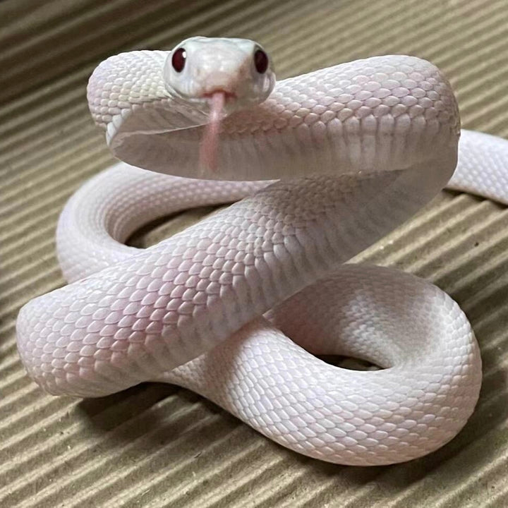 白娘娘蛇是北美德州鼠蛇的珍稀白化變種,通體雪白無斑,雙目呈深紅色或黑色,因酷似中國神話中的「白素貞」而得名,是一種性情溫順、外觀獨特的無毒蛇類,非常適合作為寵物飼養