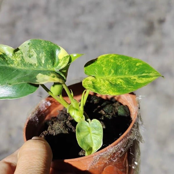 伯樂錦蔓綠絨是我們最喜歡的色彩繽紛的蔓綠絨之一,葉片的顏色從全黃到斑駁的白色和綠色不等。