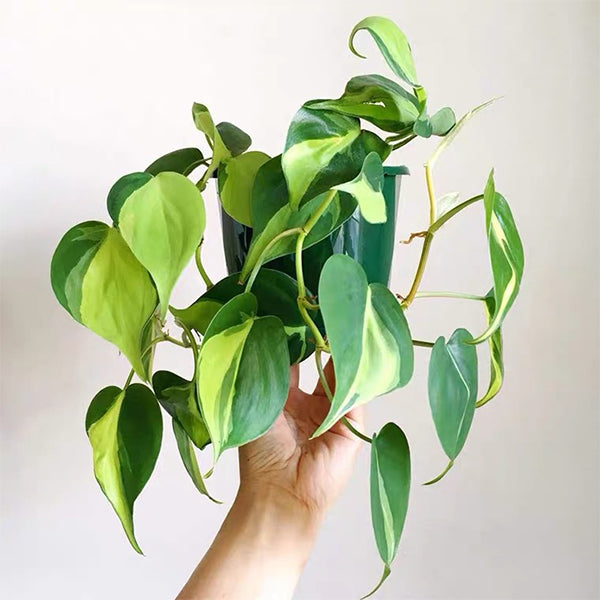 Philodendron scandens 'Brazil' is a vines that clamber in trees in their native tropical habitat,. The color of its leaves is like painted, and the dark green leaves are very beautiful with light yellow and lemon green embellishments. Most form aerial roots, which in the wild help them climb trees, and in your home can be put to use to help them climb a plant pole. They grow well in most indoor light conditions at normal room temperature or slightly warmer.