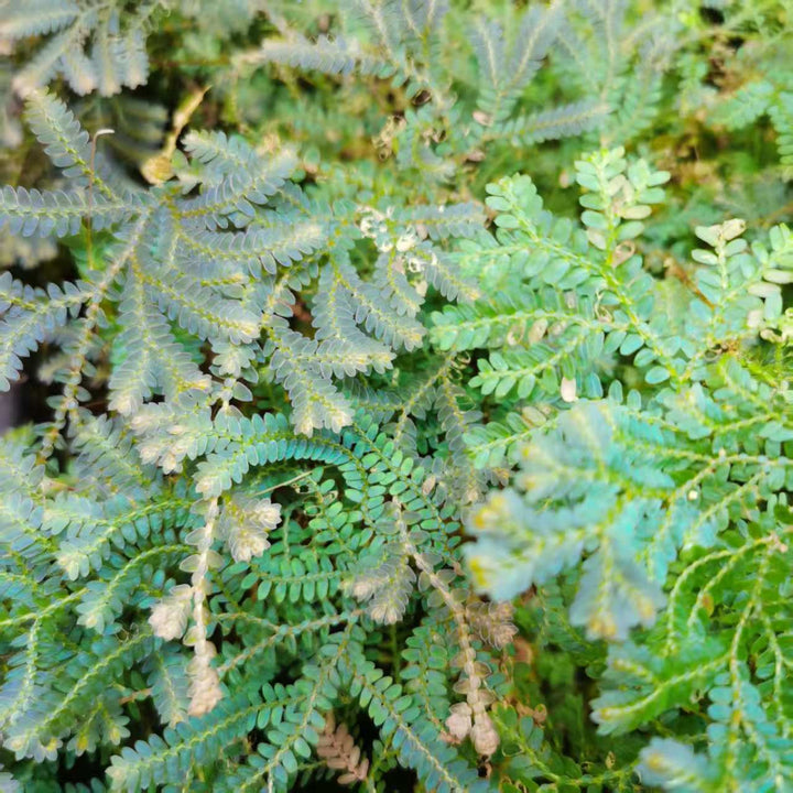 翠雲草於卷柏屬中的一個獨特物種,以其藍綠色的葉片和蔓生姿態而著稱,成为荫生园林和盆景制作中的经典选择。其耐阴性强、适应力广,常用於盆栽觀賞,寓意幸福和快樂。其獨特的藍綠色熒光和蔓生姿態,也象征著自然之美和生命的活力。