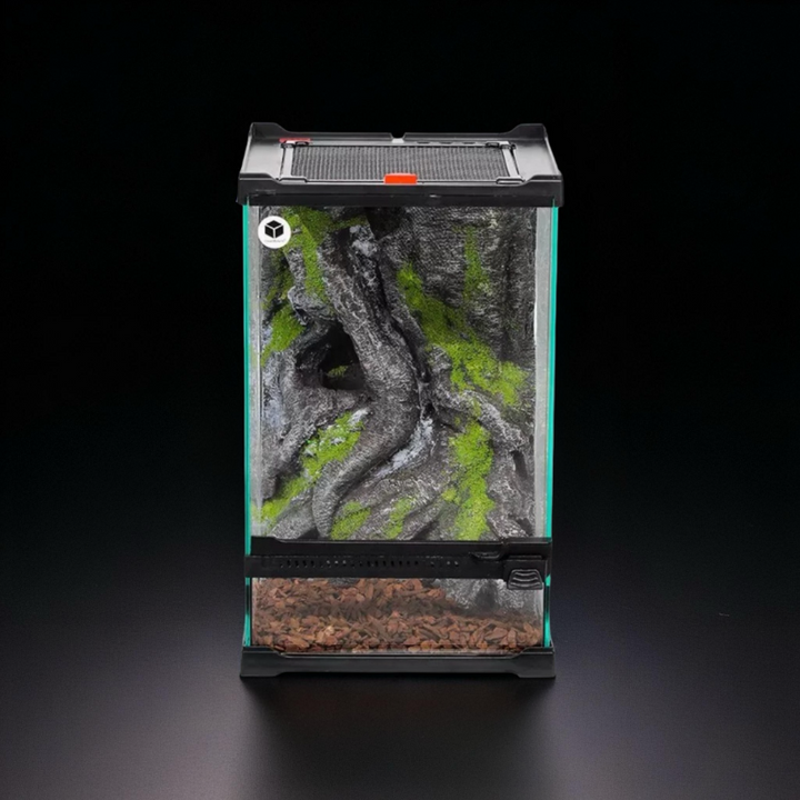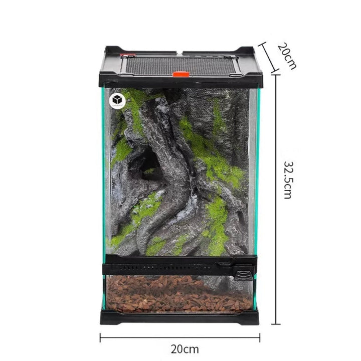 【整體尺寸】20*20*32cm【材質】浮法玻璃、工程塑料、噴塑金屬網、PU背景板、仿真植物【型號】ZF202032-榕樹洞青色#710A