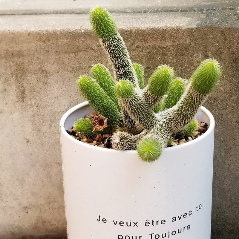 「毛絨角」即毛茸角,是蘿藦科麗鐘角屬的小型多肉植物,圓筒狀,表面布毛絨狀硬刺,花朵具獨特香氣,會吸引特定傳粉昆蟲,兼具觀賞性與獨特形態,屬蘿藦科入門植物,受到多肉植物愛好者青睞。