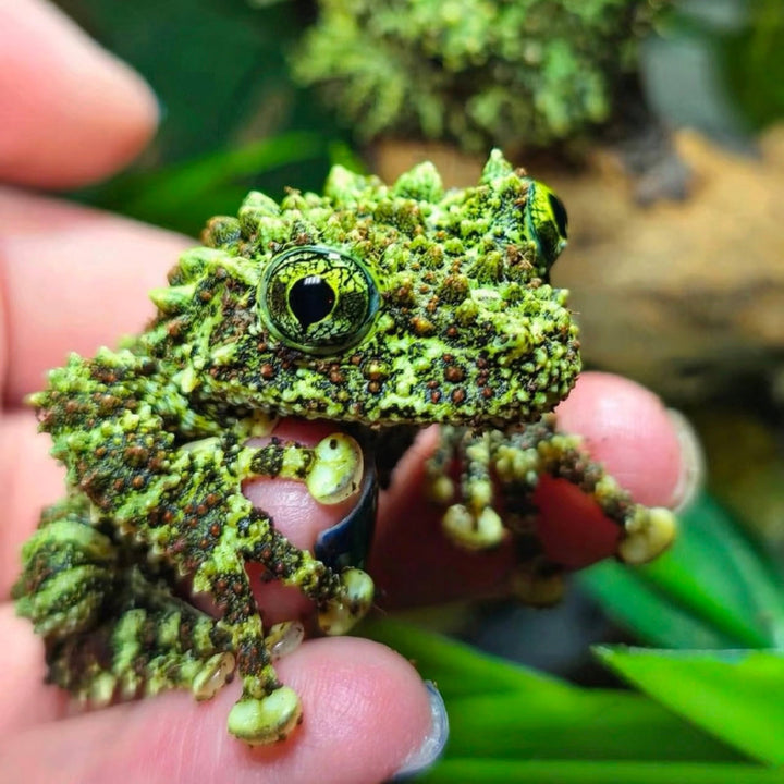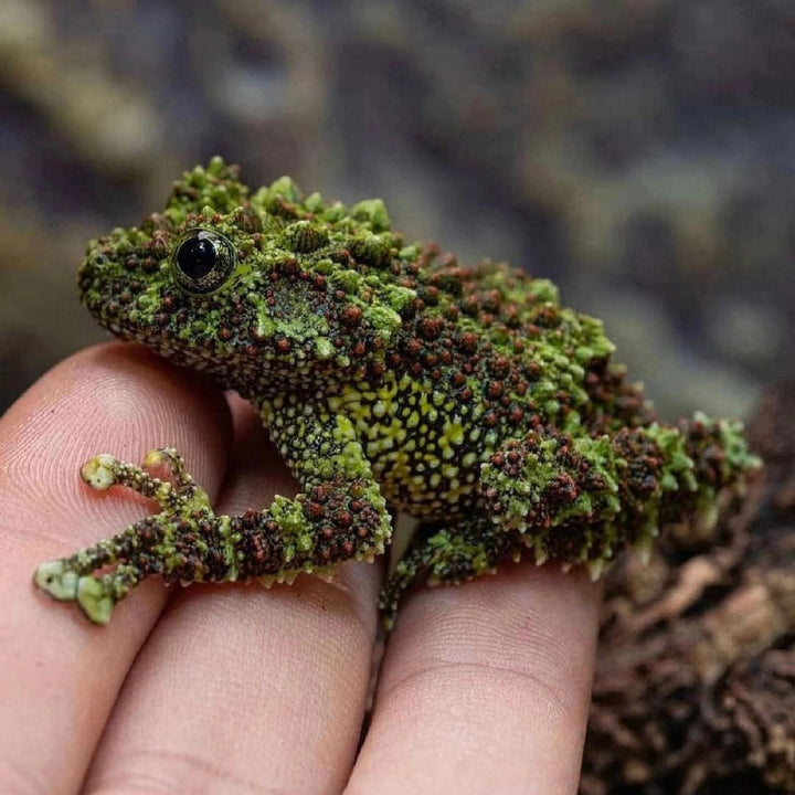 苔蘚蛙,是樹蛙科疣皮蛙屬的兩棲動物,以其極致的擬態聞名。它的皮膚遍佈不規則的綠色、褐色乃至黑色疣粒,質地與顏色酷似生長在潮濕巖石上的苔蘚,這使牠能完美隱匿於棲息環境中。此物種原生於越南北部喀斯特地形的雨林與山洞溪流附近。牠們為樹棲性,趾端有發達的吸盤,擅長攀爬。苔蘚蛙性情溫和,主要於夜間活動,以小型無脊椎動物為食。其獨特的偽裝不僅是躲避天敵的利器,也讓它成為兩棲動物愛好者眼中極具魅力的物種。