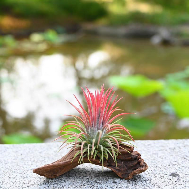 空氣鳳梨紅精靈隸屬鳳梨科鐵蘭屬,是極具特色的附生植物。其株型緊湊呈球狀,葉片在充足光照與溫差刺激下會泛出鮮豔的紅色。作為空氣鳳梨的代表品種,紅精靈通過葉面吸收水分和養分,無需土壤即可生長,展現了植物適應環境的非凡智慧。既可懸掛於空中栽培,也可點綴於創意基座,是現代微景觀與室內綠化的理想選擇。