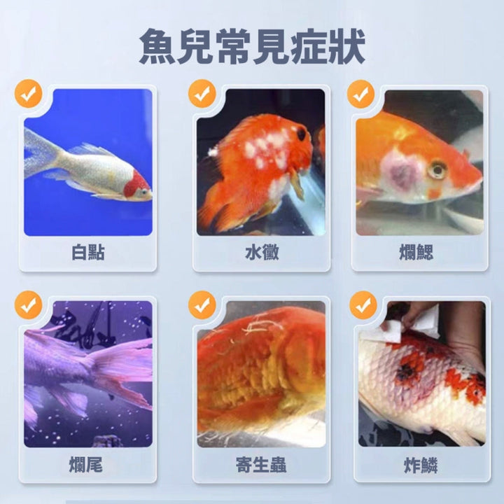 - 專治觀賞魚水霉病、爛鰭爛尾等真菌感染,對魚卵發霉有預防效果