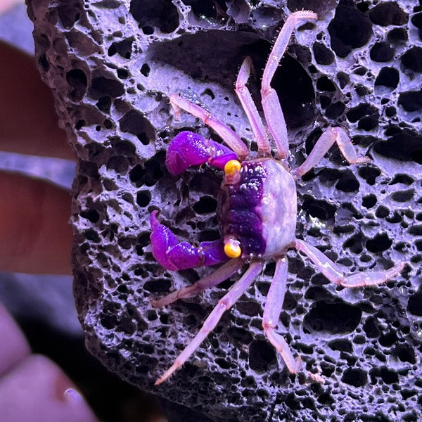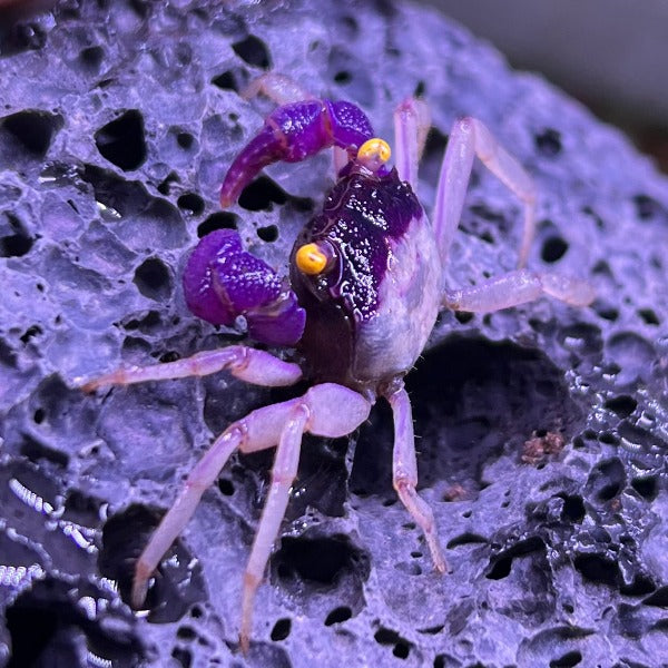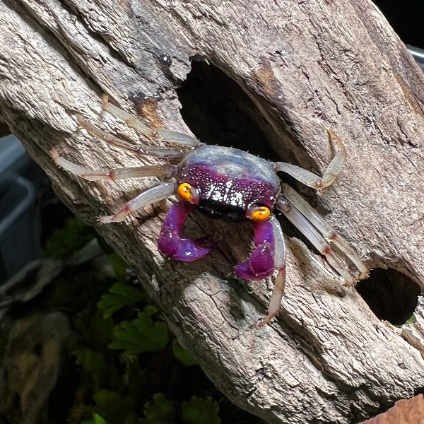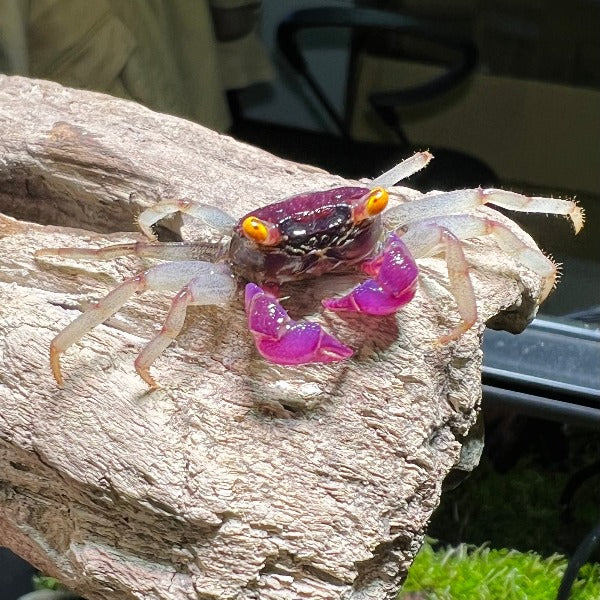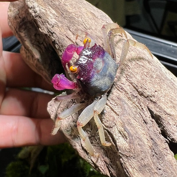金睛玉面惡魔蟹 ( Geosesarma dennerle var. White Leg ) 是一種小型、色彩豐富的半陸生物種,原產於印尼爪哇島。它棲息在溪流、河流和池塘附近的森林地區。它大部分時間都在陸地上度過,但也經常淹沒在淡水中,包括蛻皮時。
