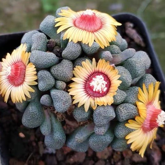 唐扇是番杏科中極具特色的多肉品種,其葉片獨特地排列成緊密的扇狀,葉表佈滿細小疣突,在陽光照射下會呈現出銀灰與紅褐交織的迷人色澤。這種獨特的葉片紋理與緊湊的株型,使其成為多肉收藏家鍾愛的品種之一,尤其適合用於岩石造景或迷你盆栽。