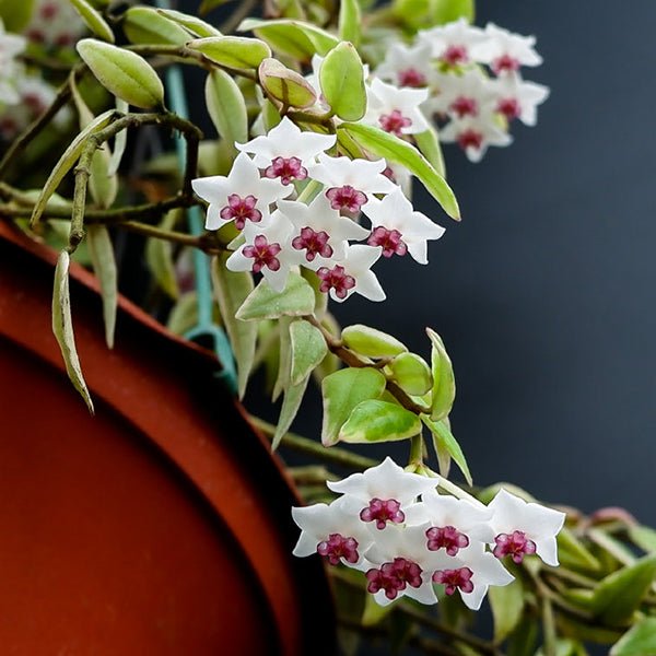 貝拉屬蘿藦科球蘭屬多年生蔓性草本植物,原產於印度東北部、緬甸、泰國、印度尼西亞、馬來西亞等地區,通常生長在熱帶雨林的樹上。斑葉貝拉球蘭與貝拉球蘭的差別在於前者葉片邊緣是黃色的錦色,不管是將其懸掛在客廳、書房的窗邊,還是置於陽臺、露臺的一角,都能很好的提升空間的格調與氛圍