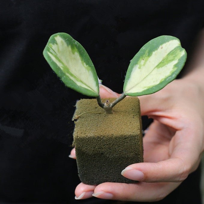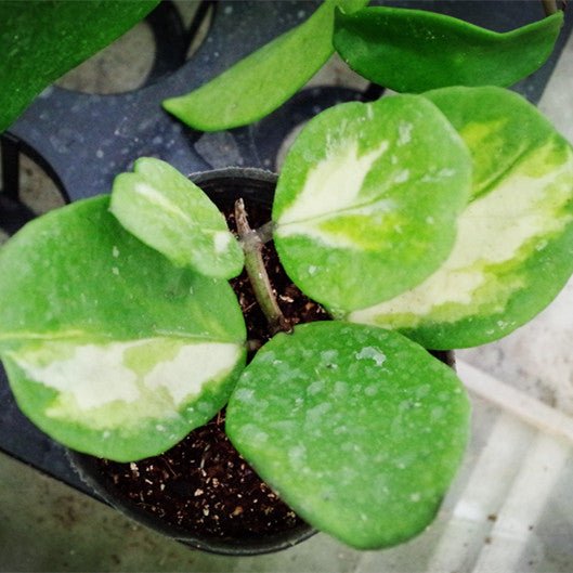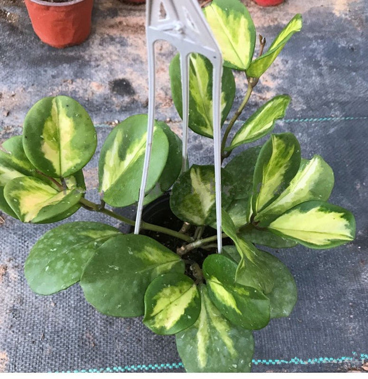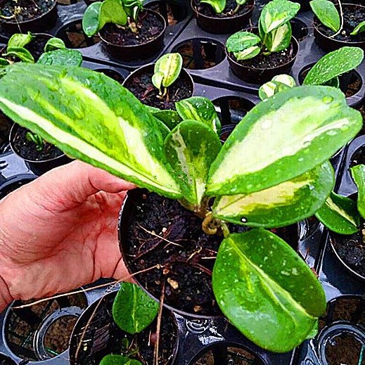 Hoya obovata varigata is the ultimate collectors Hoya. Known for it’s lovely round waxy leaves and yellow variegation down the midrib of the leaves, this climber also produces gorgeous and fragrant flower bunches.