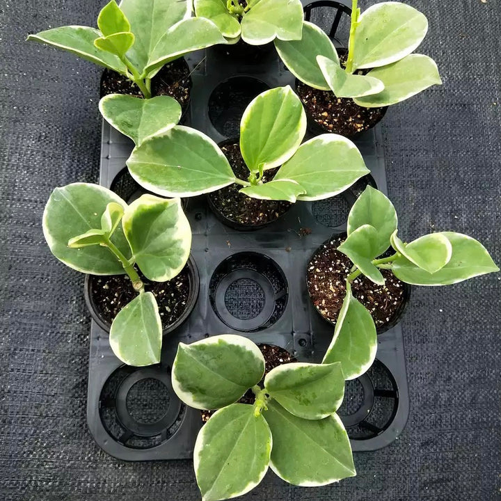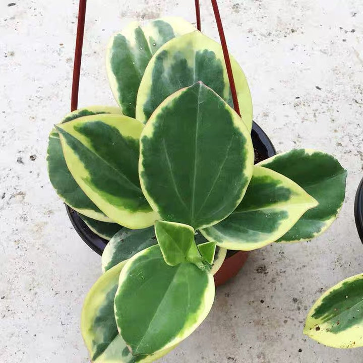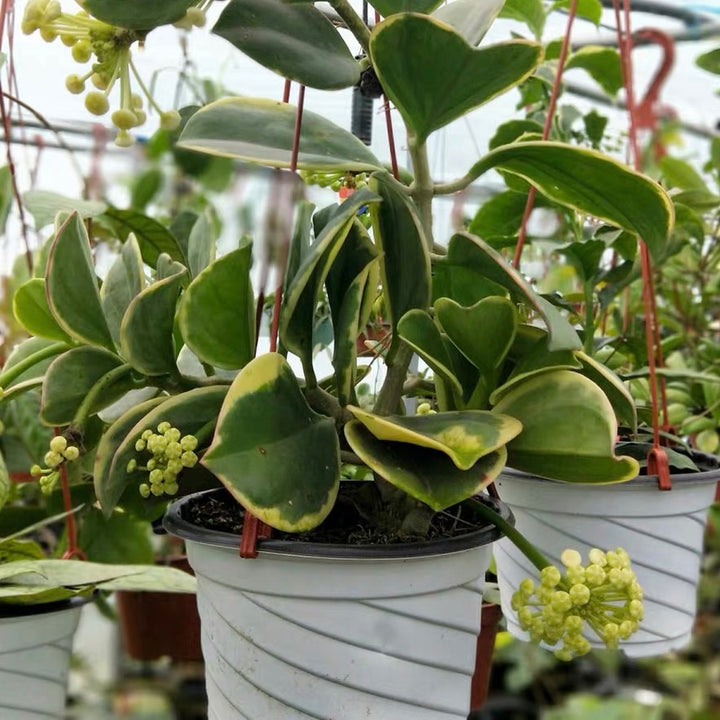 Hoya pachyclada variegata is a vining epiphytic plant in the family Apocynaceae.It is native to European and Asian countries. The inflorescence is made up of multiple flowers in a group of umbel. The inflorences are cream,star-shaped,with white centers. They like made up of wax.The flower's surface fuzzy beacuse it is covered by tiny hair. They are heavily scented with a sweet fragrance.The leaves are golden green.