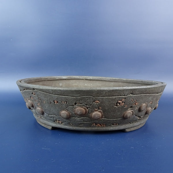 盆栽鉢 文山 越前文山 小鉢 長辺 約 9.5cm 鯖江園芸 丸鉢 鋲打 泥物 u1198428867