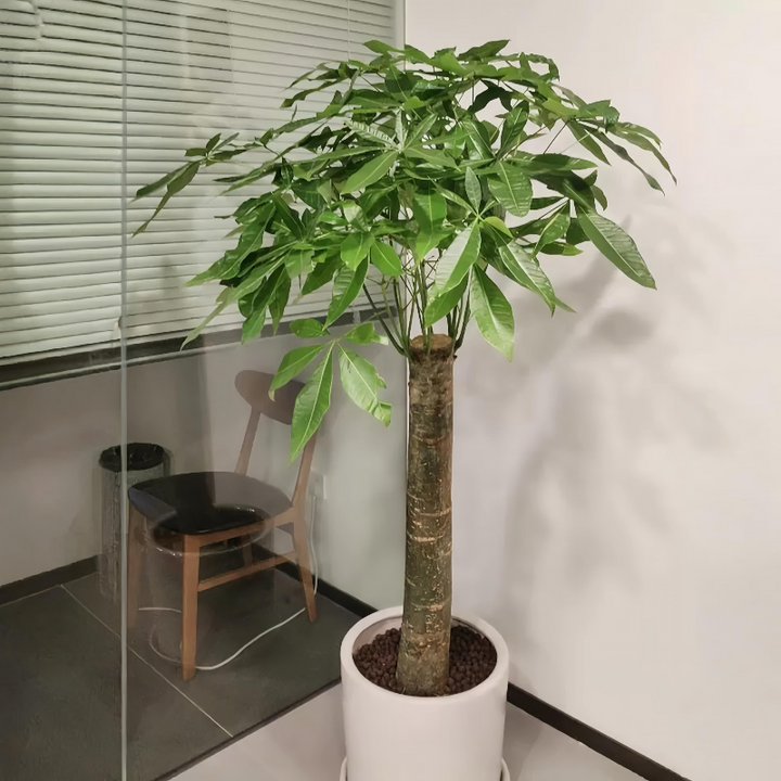 一株發財樹,滿室好運來!家庭、辦公室和商鋪的熱門擺設,象征財運亨通、事業興旺。風水學中一般將其擺放在東南方位象征財位。其獨特的樹形和優美的葉片也為十分具有觀賞價值。
