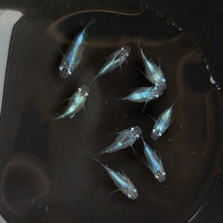 幹支球體稻田魚,是普通體幹支稻田魚的選育品種,身上有明顯的光澤感。