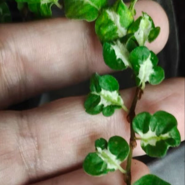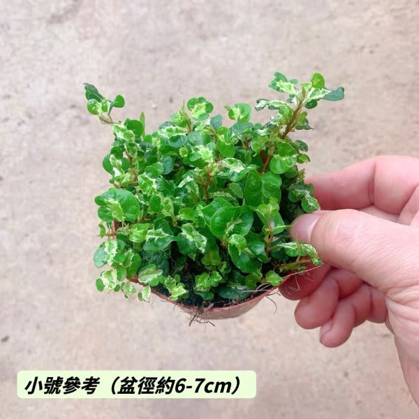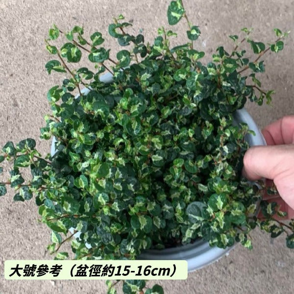 金心薜荔幼葉中心呈鮮明金黃色,隨葉片成熟漸變為乳黃或金綠交織,葉緣保持深綠,對比強烈,光照越充足,金色越璀璨;半陰環境下會轉為柔和香檳色。生長速度稍緩,適合精緻造景,室內外皆宜。