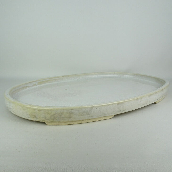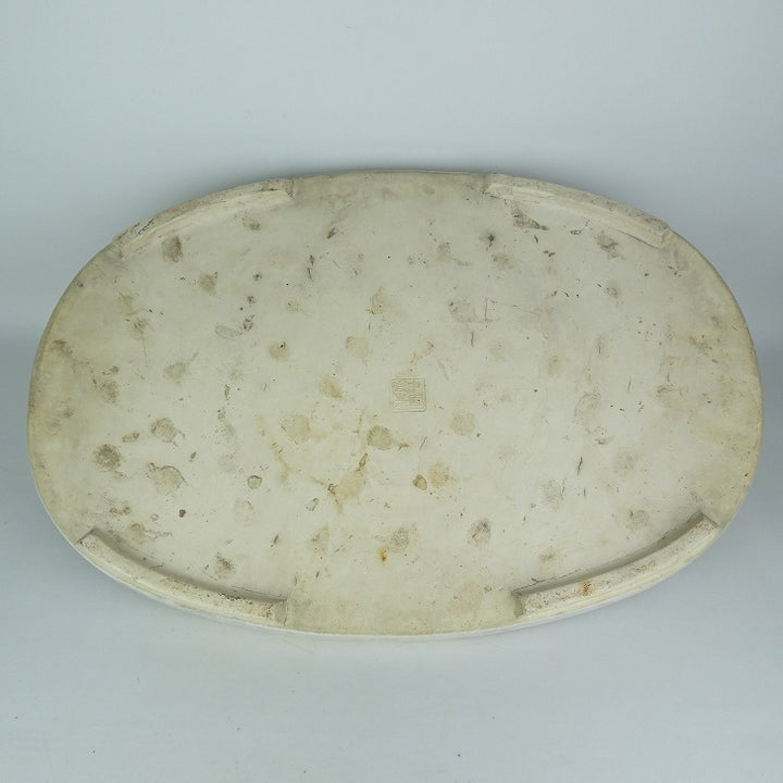 中古水盤 中国宜 大型 長辺 約60cm 楕円 鉢 水石 盆栽 花器 釉薬 中古 p1198416035