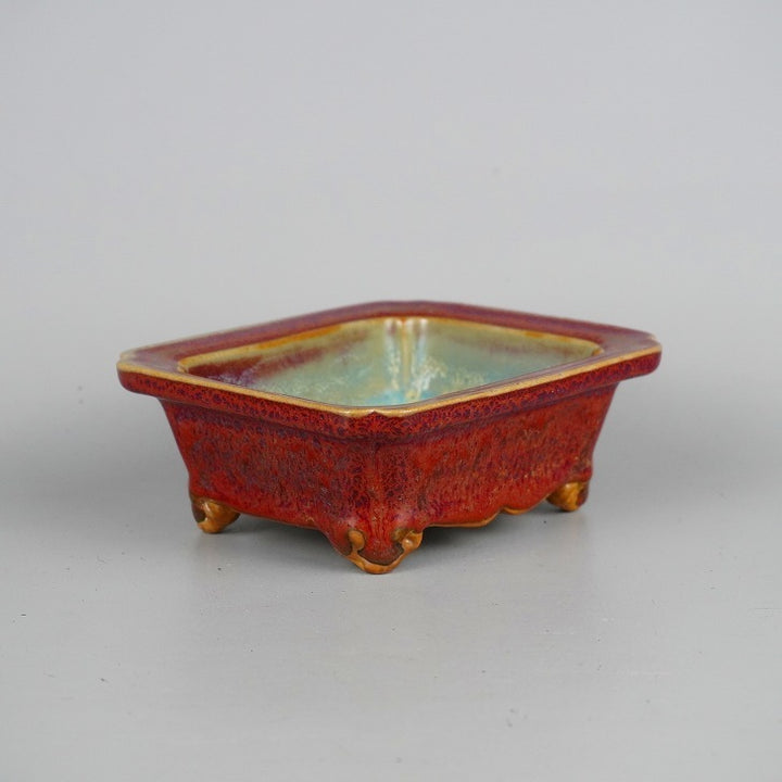 水盤 九 小型 長辺 約13cm 長方 鉢 水石 盆栽 花器 現品 中古 品 名水盤 (九) サイズ高さ 約4.8センチ...