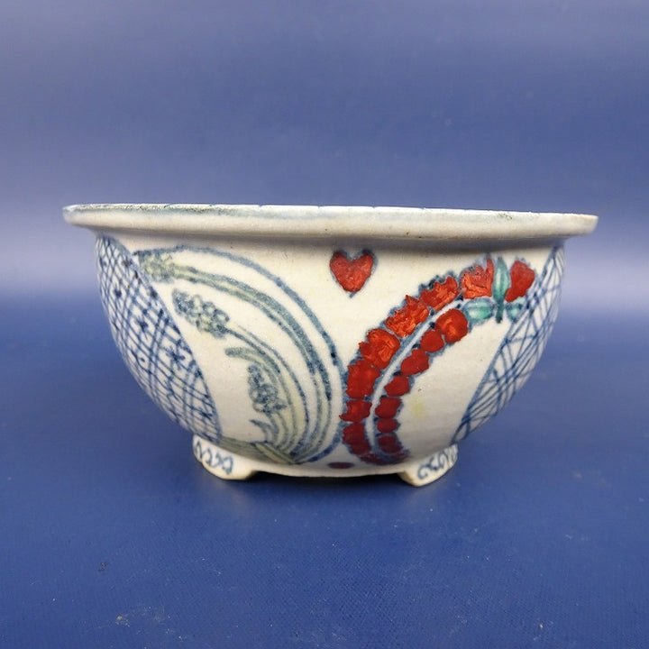 中古盆栽鉢 たかこ 大吉窯 小鉢 長辺 約9cm 丸鉢 外縁 色絵 ハート 稲穂 箱付 中古鉢 w1198406096