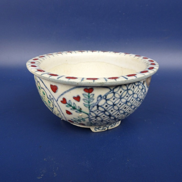 【中古】盆栽鉢 たかこ 大吉窯 小鉢 長辺 約9cm 丸鉢 外縁 色絵 ハート 稲穂 箱付 現品 中古鉢 商 品 名たかこ サ イ ズ高さ 約4.3センチ...