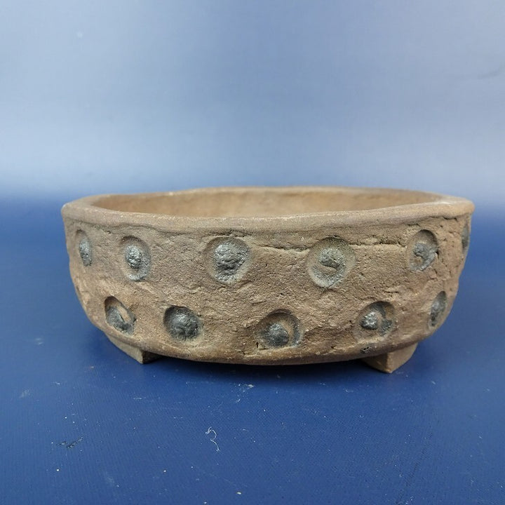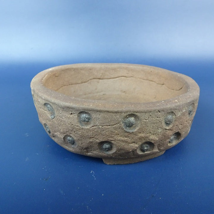 中古盆栽鉢 八重 小型 長辺 約10.4cm 丸鉢 鋲打 泥鉢 中古鉢 h1198423295