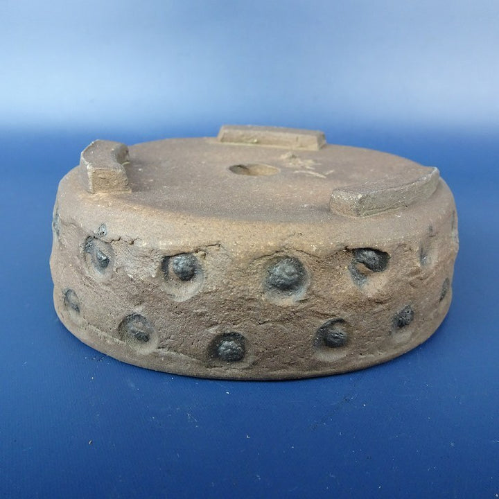 【中古】盆栽鉢 八重 小型 長辺 約10.4cm 丸鉢 鋲打 泥鉢 現品 中古鉢 品名八重...
