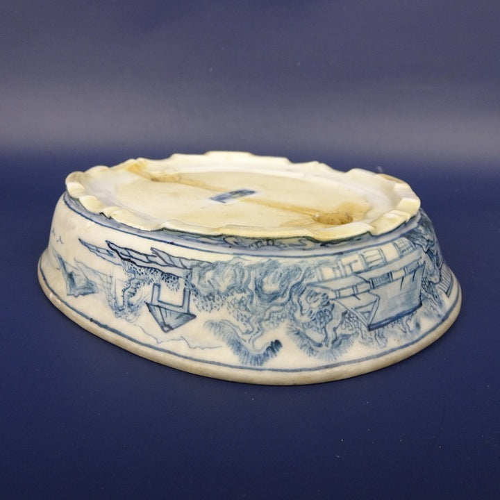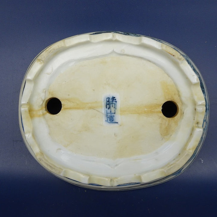 【中古】盆栽鉢 勝山 小型 長辺 約13.5cm 楕円鉢 外縁 染付 山水図 箱付 現品 中古鉢 商 品 名勝山(箱付き) サ イ ズ高さ 約3センチ...