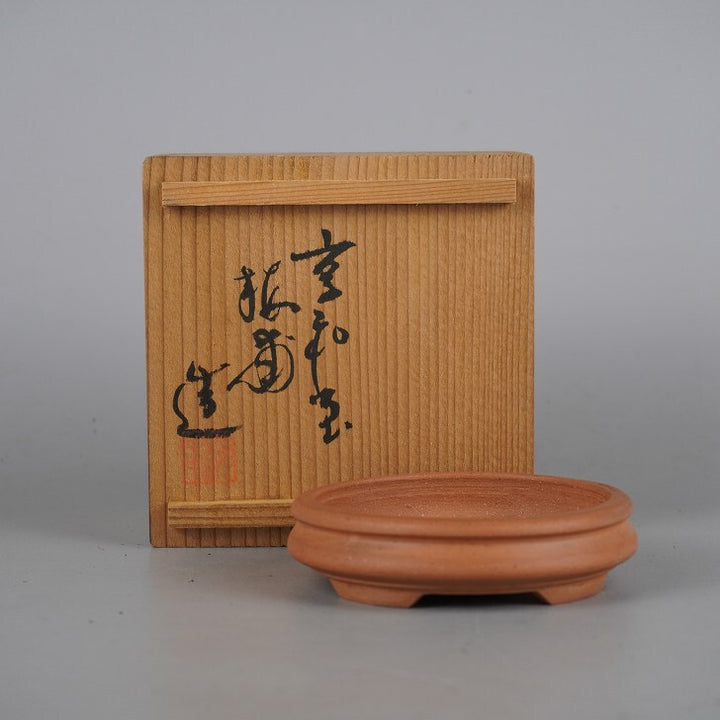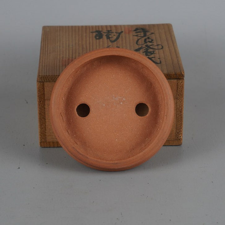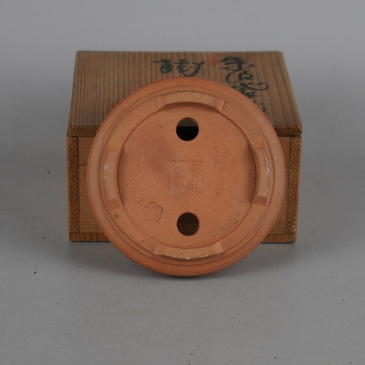 盆栽鉢 山之衣 梅甫 小鉢 長辺 約9cm 丸鉢 泥物 共箱付 観賞用 現品 中古鉢 品名山之衣梅甫 (共箱)...
