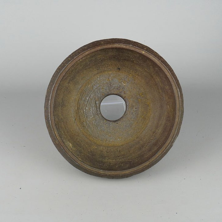中古盆栽鉢 常滑 十王堂 松泉造 中型 長辺 約 22cm 丸鉢 泥物 中古鉢 u1198431504