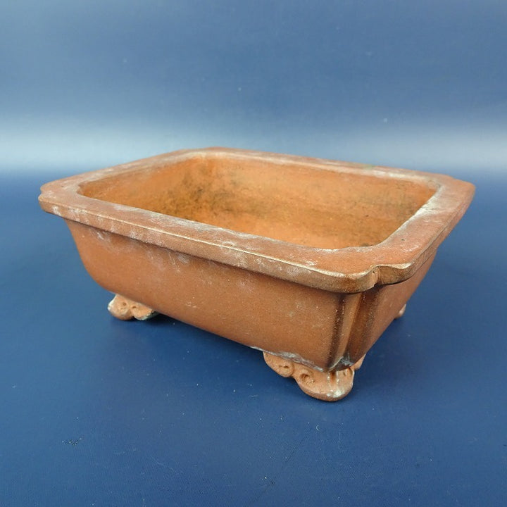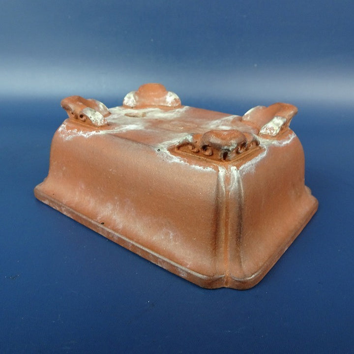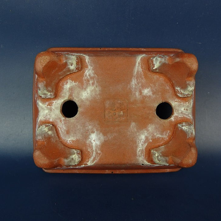 中古盆栽鉢 常滑 壱興造記 渡辺 一弘 小型 長辺 約12.3cm 長方鉢 外縁 隅入 雲足 泥鉢 中古鉢 n1198410576