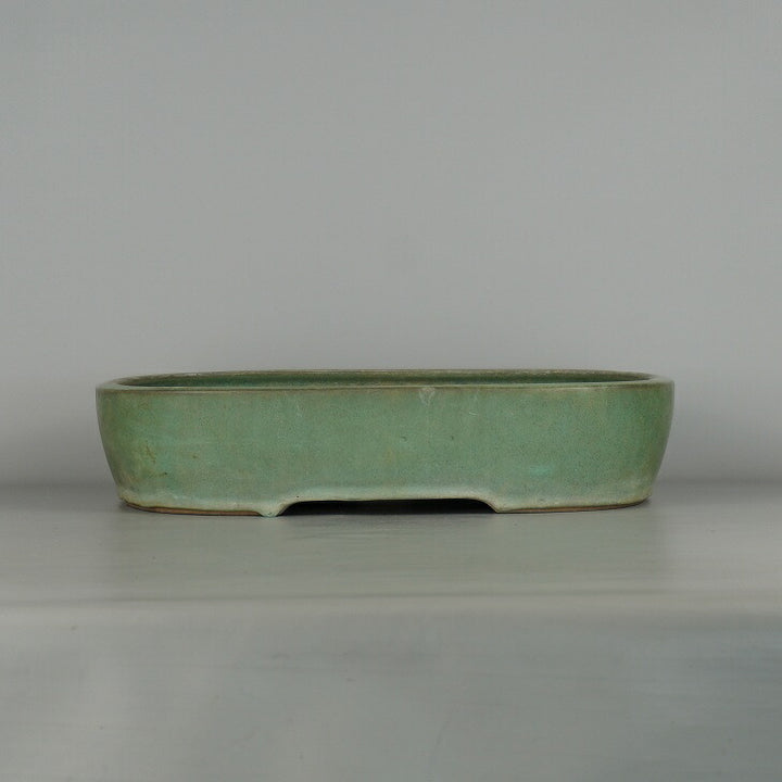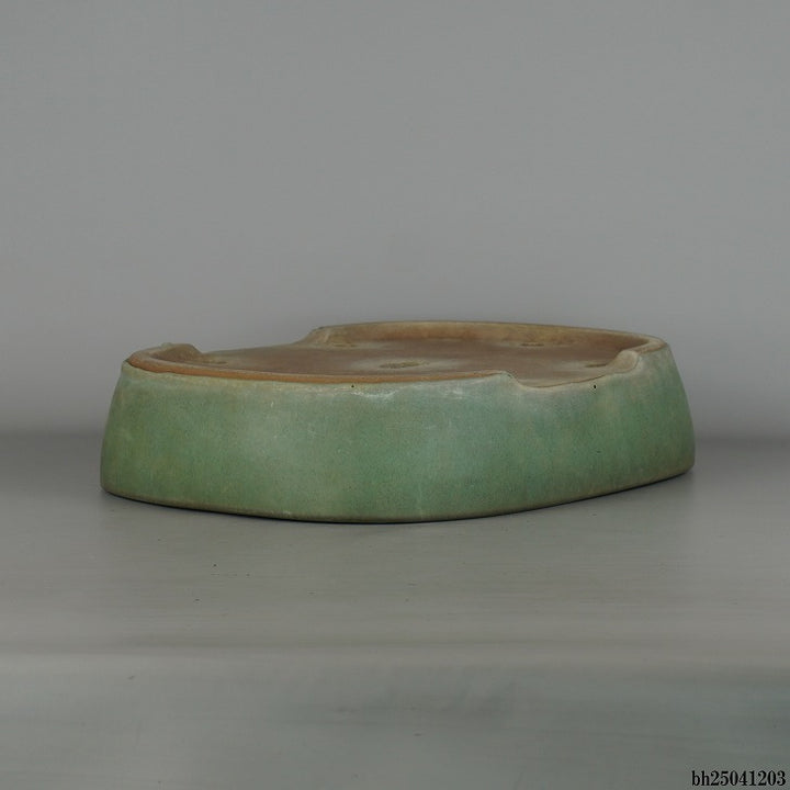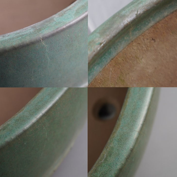 盆栽鉢 常滑 山房造 大型 長辺 約 41cm 長方鉢 撫角 釉薬 現品 中古鉢 山房造 山房鯉江製陶所 かつては押型製法による量産タイプが主体の良質で手頃な常滑色鉢として親しまれた。1980年代半ば頃からは仕上げにこだわった高級品を指向し、安定した製品を出している。型は比較的スタンダードなものを中心に釉色、大小を含めると数百種に及ぶ。釉物は瑠璃、均釉、海鼠釉、白釉などがある。 以前は量産タイプには「山房造」、高級指向製品には「山房造鳳舟」、「山...