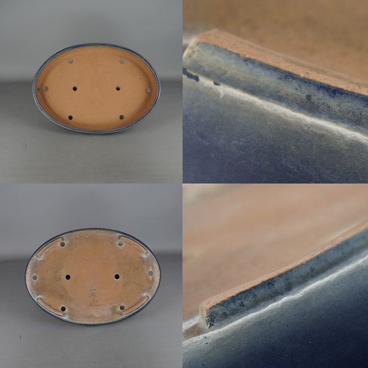 盆栽鉢 常滑 山房造 大型 長辺 約 49cm 楕円鉢 釉薬 現品 中古鉢 山房造 山房鯉江製陶所 かつては押型製法による量産タイプが主体の良質で手頃な常滑色鉢として親しまれた。1980年代半ば頃からは仕上げにこだわった高級品を指向し、安定した製品を出している。型は比較的スタンダードなものを中心に釉色、大小を含めると数百種に及ぶ。釉物は瑠璃、均釉、海鼠釉、白釉などがある。 以前は量産タイプには「山房造」、高級指向製品には「山房造鳳舟」、「山房造風...