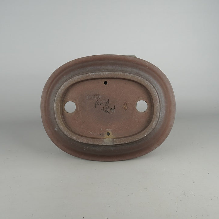 中古盆栽鉢 常滑 山秋造 松泉焼 中型 長辺 約29cm 楕円鉢 外縁 下帯 泥物 中古鉢 t1198408283