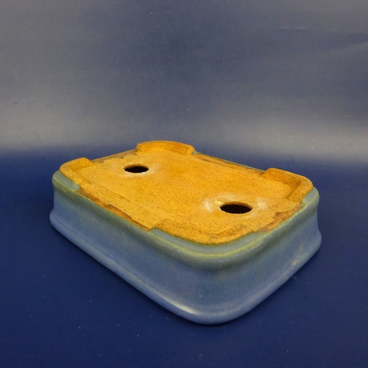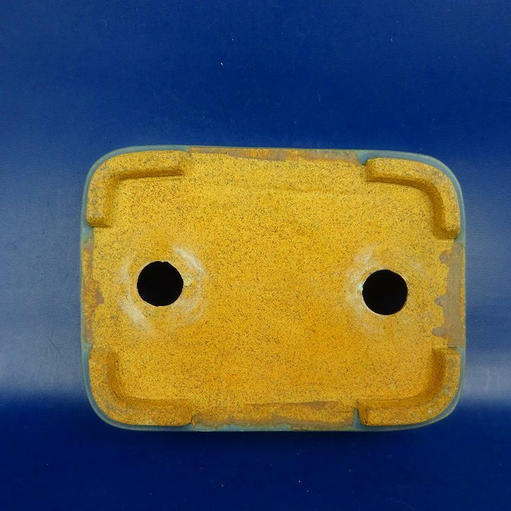【中古】盆栽鉢 常滑 服部 小型 長辺 約13cm 長方鉢 外縁 切足 青釉 現品 中古鉢 服部の鉢は小鉢から大鉢まであるが、釉色小鉢主体で釉は多彩である。型に凝ることなく、一般的な正方形、長角、六角、楕円、丸など種類は豊富でほぼ全て型を用いて作られている。 釉もできるだけ均一な発色をめざし、培養に適し使いやすく樹が映える鉢をつくることに専念される。...