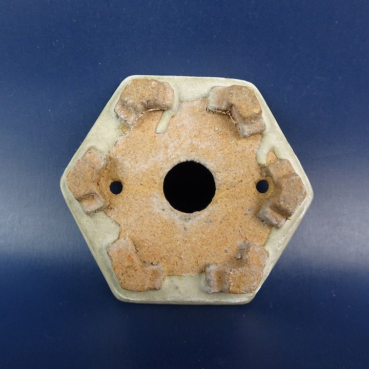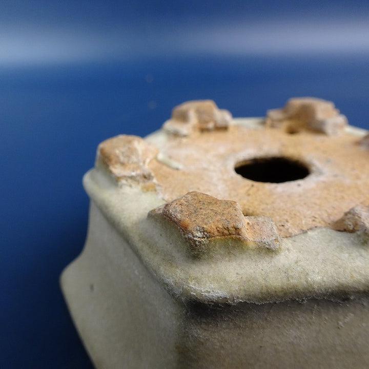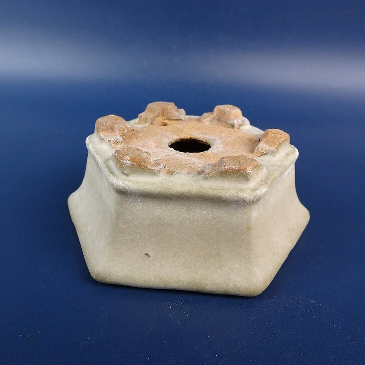 中古盆栽鉢 常滑 服部 小鉢 長辺 約 9cm 六角鉢 外縁 釉薬 中古鉢 m1198405149