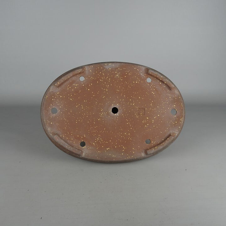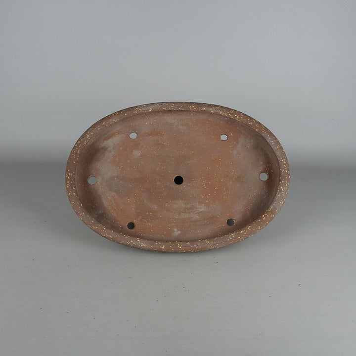 盆栽鉢 常滑 誠山造 中型 長辺 約37.5cm 楕円鉢 梨皮 泥物 現品 中古鉢 品名誠山造...