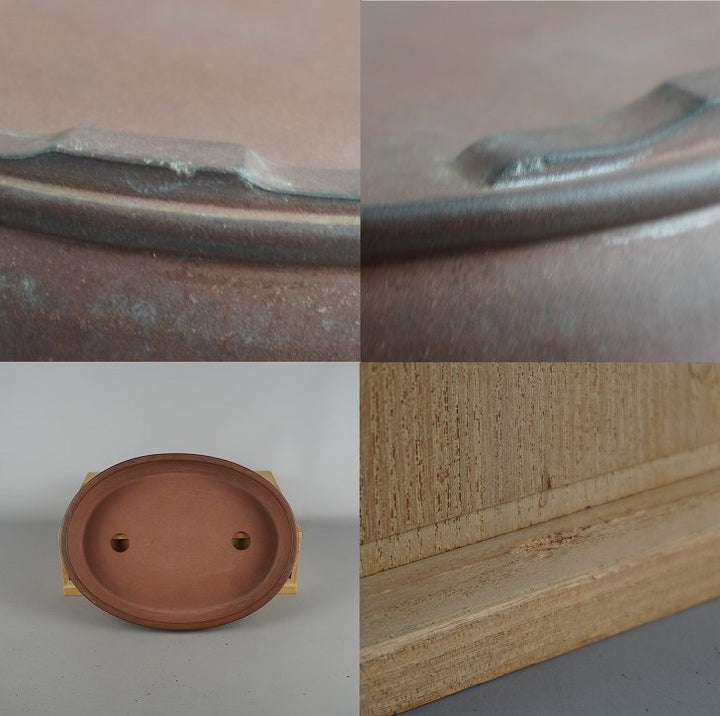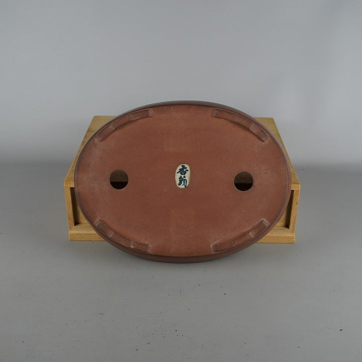 盆栽鉢 平安 香翁 中型 長辺 約27.3cm 楕円鉢 下紐 泥物 箱付 観賞用 現品 中古鉢 品名平安香翁(箱付)...
