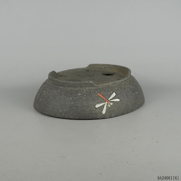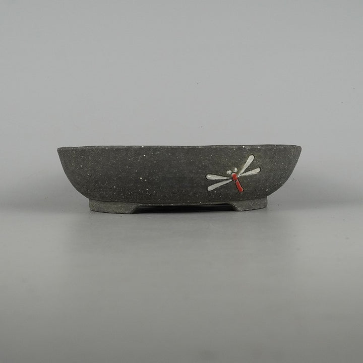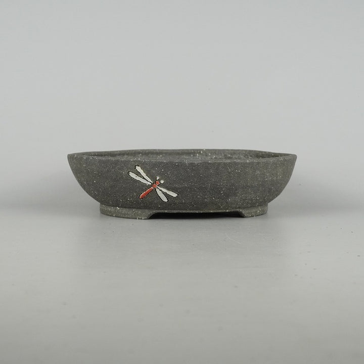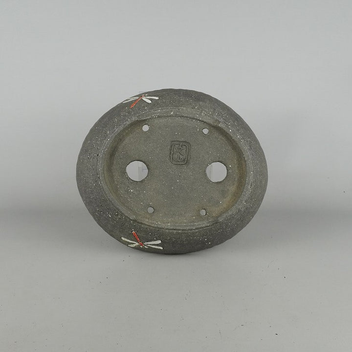 盆栽鉢 文山 越前文山 中型 長辺 約22.5cm 楕円鉢 色絵 蜻蛉 トンボ 泥物 現品 中古鉢 越前文山 1973年に鯖江園芸を開園する。 地元に伝わる越前焼に則って独自の作風を確立し、手びねりによる焼締の他、辰砂などの釉薬や象嵌を施したものがある。...