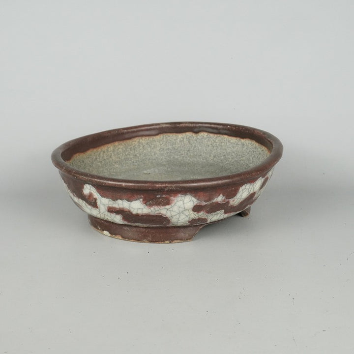盆栽鉢 文山 越前文山 中型 長辺 約22cm 楕円鉢 釉薬 現品 中古鉢 送料無料 越前文山 1973年に鯖江園芸を開園する。 地元に伝わる越前焼に則って独自の作風を確立し、手びねりによる焼締の他、辰砂などの釉薬や象嵌を施したものがある。...