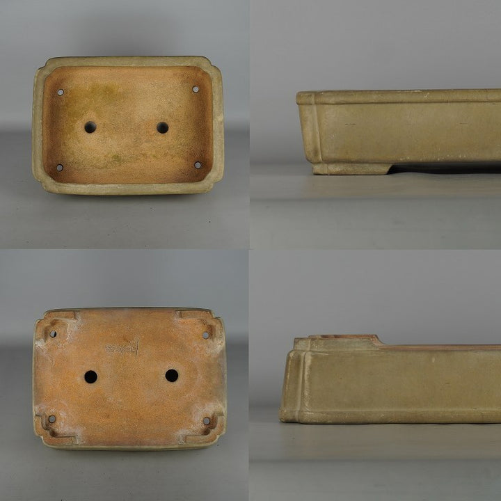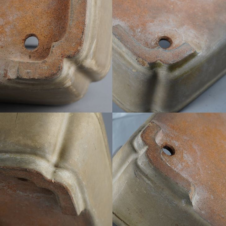 盆栽鉢 服部 大型 長辺 約 42.3cm 長方鉢 縁付 隅入 釉薬 現品 中古鉢 品名服部...