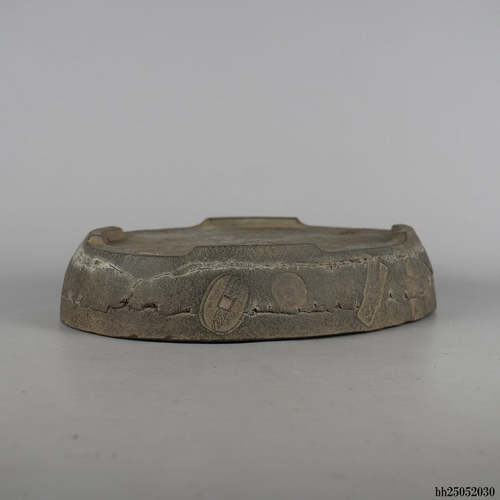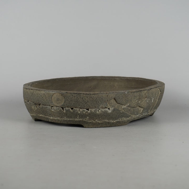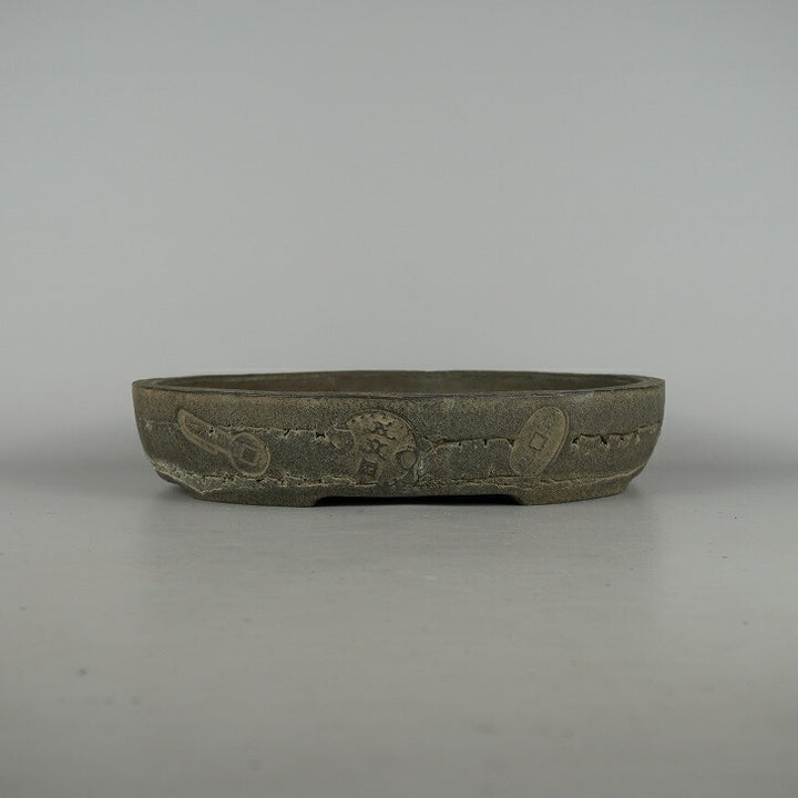 中古盆栽鉢 松泉造 中型 長辺 約 29.5cm 楕円鉢 古銭 泥物 中古鉢 l1198407731