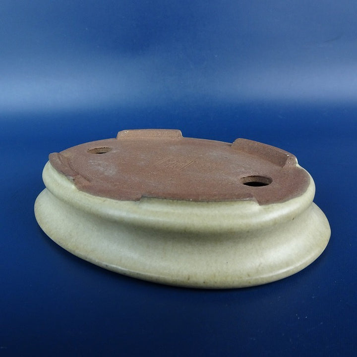 中古盆栽鉢 柴勝 小型 長辺 約12.1cm 楕円鉢 外縁 釉薬 中古鉢 m1198403897