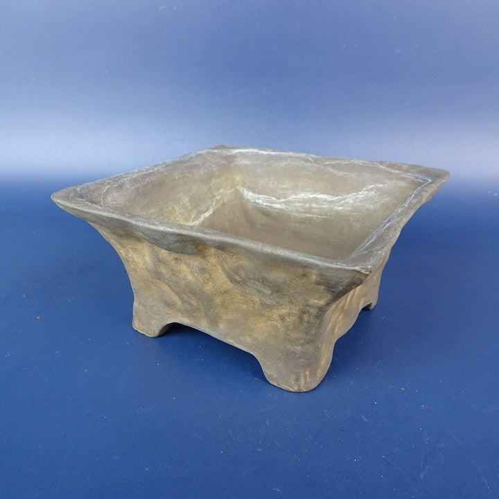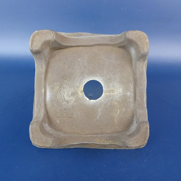 【中古】盆栽鉢 柴田 馨山造 小型 長辺 約10cm 正方鉢 泥鉢 現品 中古鉢...