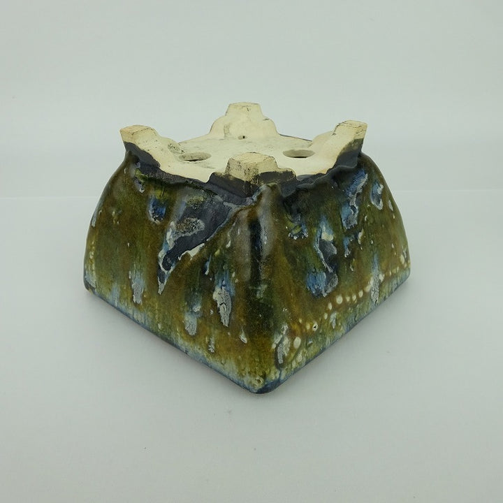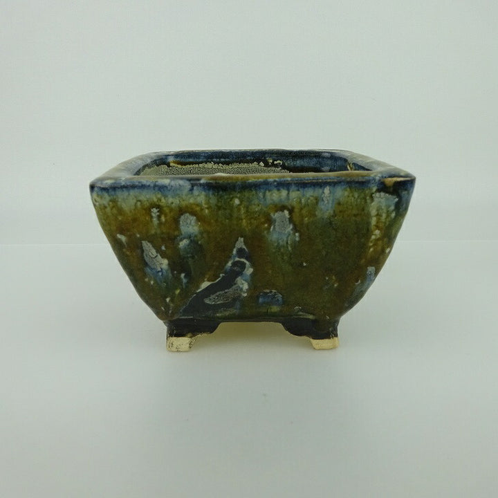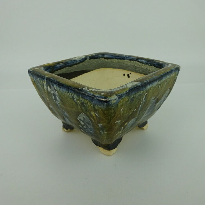 【中古】盆栽鉢 桂雲 福田桂雲 小型 長辺 約 12.3cm 正方鉢 釉薬 観賞用 現品 中古鉢 桂雲 本名:福田康男 センスの良さで品質の高い釉薬鉢を作られる。 2020年 雅風展併催の現代小鉢作家展釉薬の部において金賞受賞 現代釉薬鉢作りの第一人者の福田茂氏が甥にあたり、茂氏主催の福田工房陶芸教室で学ばれる。 もともと盆栽愛好家であることから使い勝手の良い型、多彩な釉薬が特徴の鉢を手掛けられる。...